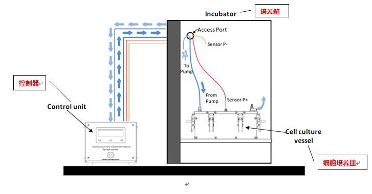 連續(xù)靜水壓力細胞培養(yǎng)系統(tǒng)用于在客戶定義的恒壓下的細胞刺激培養(yǎng)(例如,軟骨細胞)。控制器利用培養(yǎng)箱已備好的氣體混合物給培養(yǎng)皿增壓,利用連續(xù)靜水流入培養(yǎng)皿保持想要得到的溫度、濕度和二氧化碳水平。 系統(tǒng)作用: