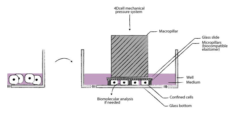 細(xì)胞被均勻地限制/壓縮在兩個亞微米分辨率的兩個平行表面之間。